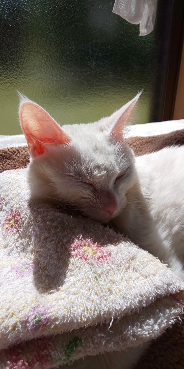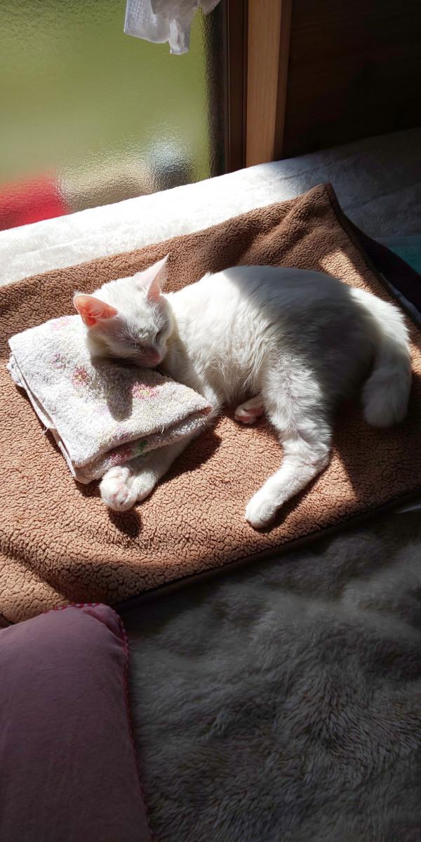 そのうち めいが手足をバタバタさせて居たので抱えながらフロアーの西日がポカポカ☀️のとこに寝せてあげたら