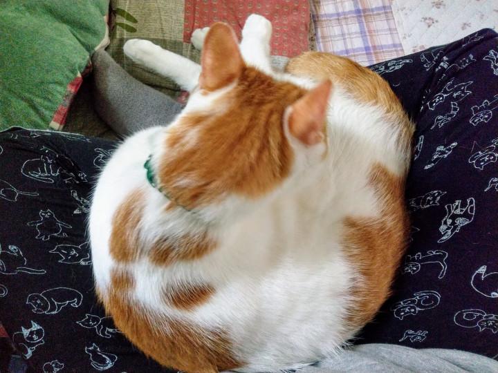 肌寒かったせいか珍しくわたしの膝の上に乗ってきた竹輪様