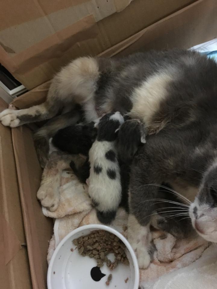 その時にはすでに5ニャンとも産まれ、ママさんに綺麗にしてもらってもぞもぞ動きよりました😅
