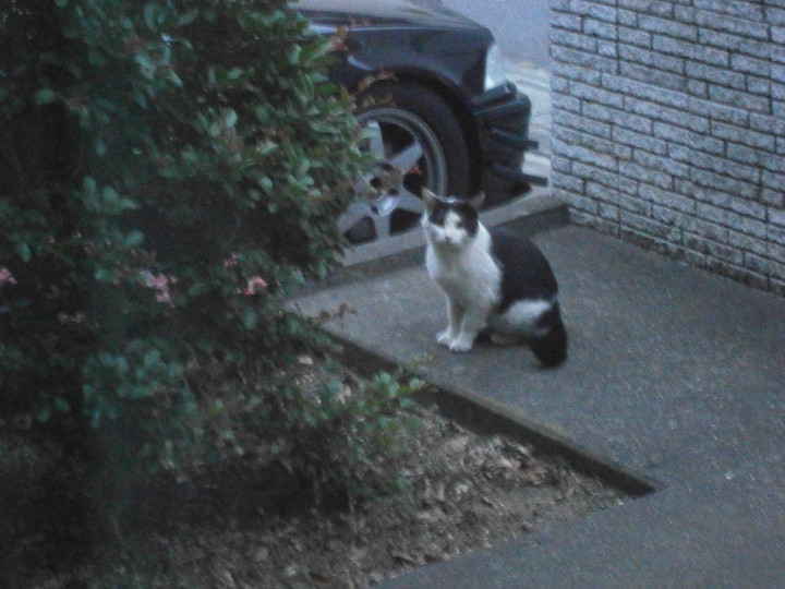 そういえば先日、我が家に訪問者が・・・初めて見るニャンですが見た感じ綺麗なので飼い猫ちゃんと思われます。