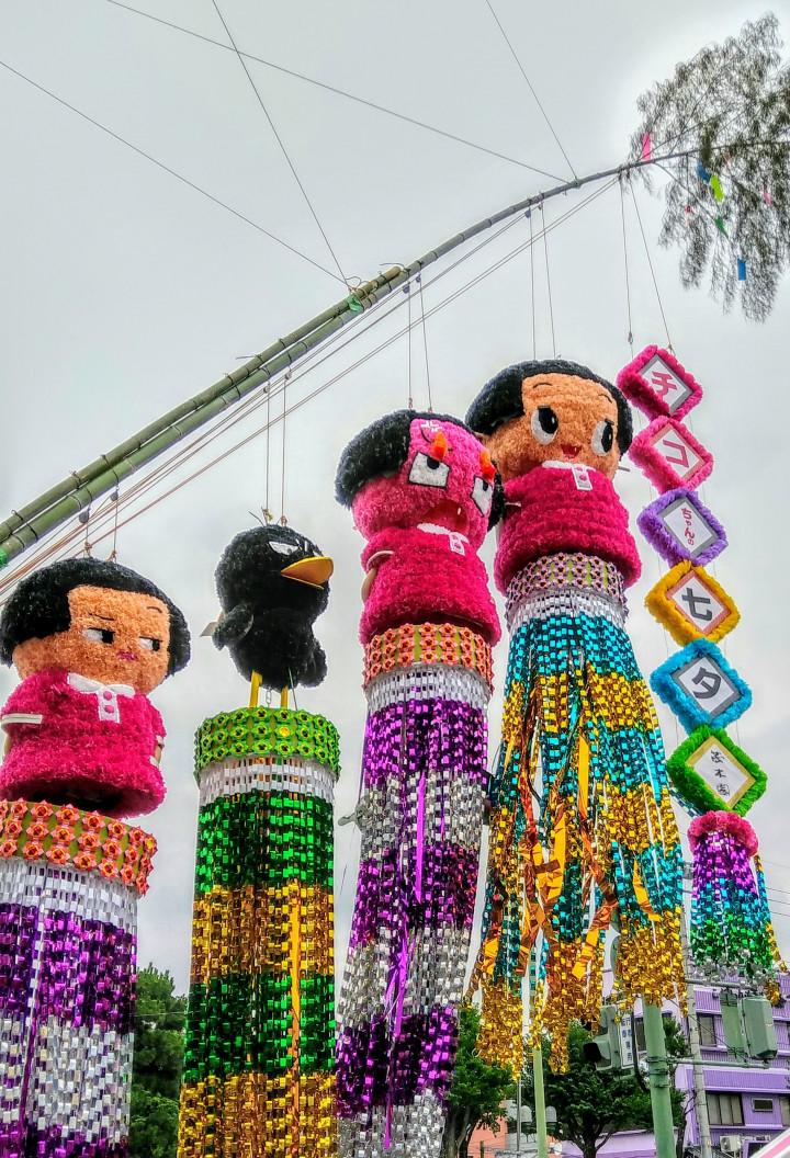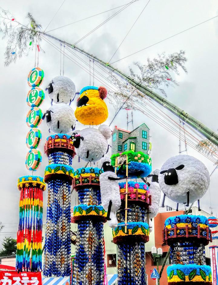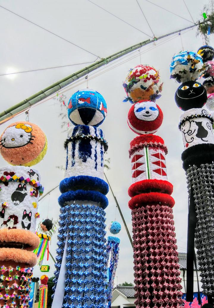 太くて長~い竹にぶら下げられ道の両側から飾られています🎋