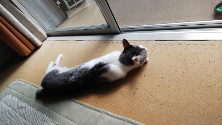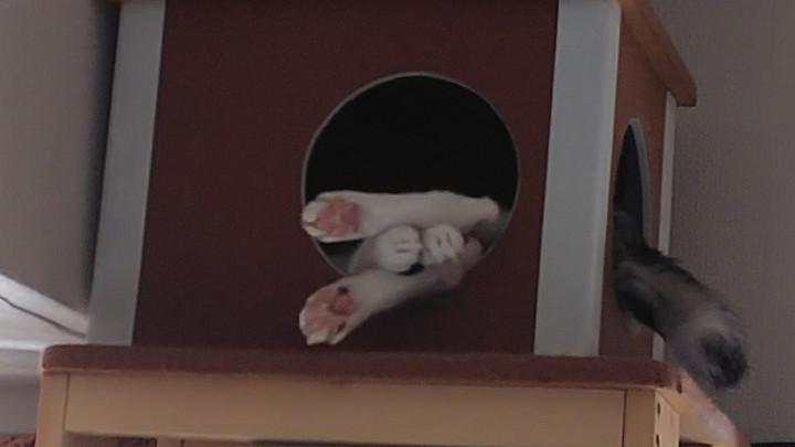 ふと見ると、足が…もうひとつの小窓からしっぽ出してる😅