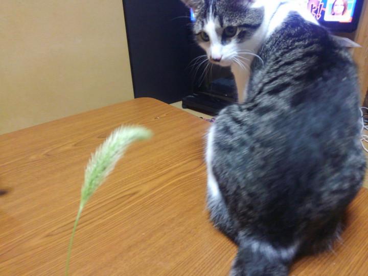 そんなぼくにやっと気付いたのか、上のおねえちゃんがくれたおみやげでぼくを釣ろうとしているよ。