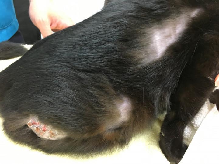 なぜか片側だけなんですが、背中と脚部分の毛がごっそり剃られたみたいにありませんでした。