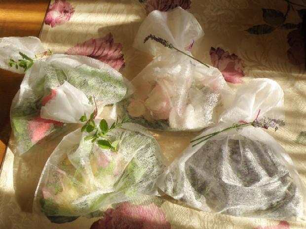 お風呂のお湯の注ぎ口近くに吊るすと、ハーブバスになります。
