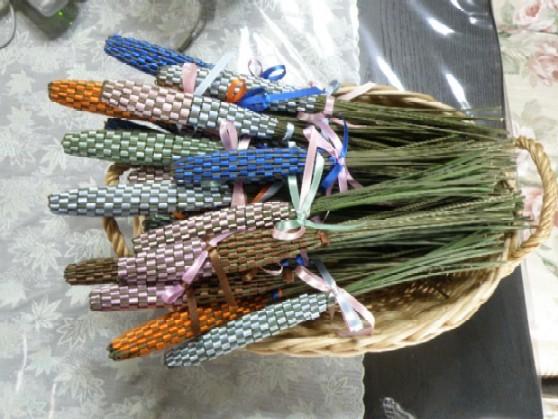 花を編むまでが結構時間がかかりますが、花の香りに包まれて、この作業が楽しいのよ。