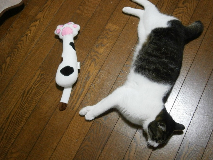 記念日のプレゼントは新しいけりぐるみ♪ ちょうど今までのエビ(?)のけりぐるみが破けて悲惨な事になっていたので買い替えました^^