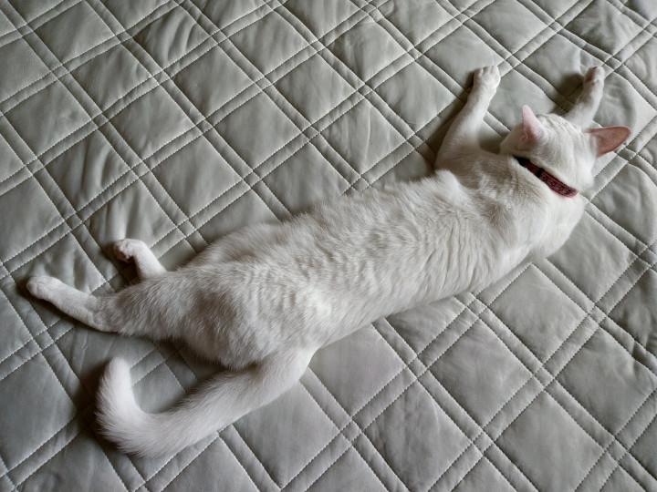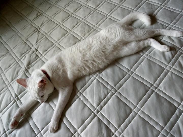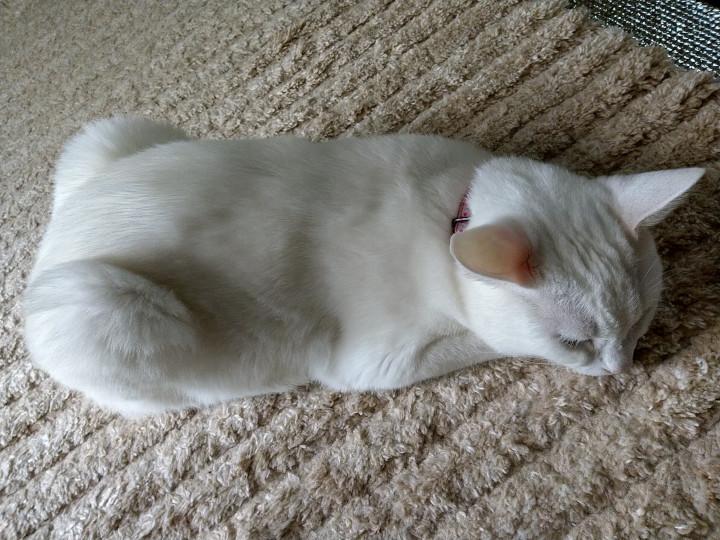 同じく北側の和室の畳の上を接触冷感のラグに替えたら、そこで伸びてました