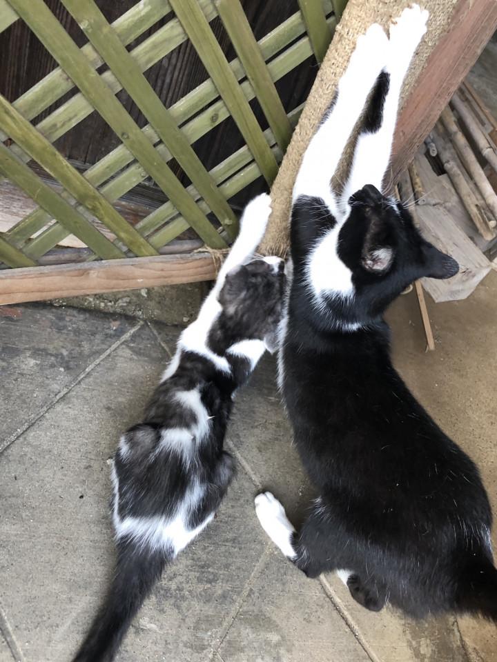 最後は可愛い親子で爪とぎです。