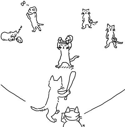 普通の野球はあんまり興味ないのですが、もしネコ野球なんていうのがあったら、きっと熱中すると思います。