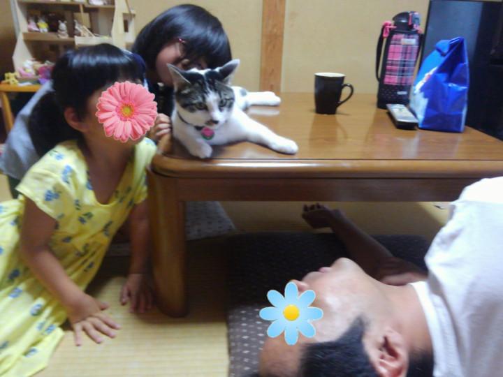 今日は猛暑日だったから、1日居間でエアコンかけてたのに、廊下のダンボールで寝てたらしい桃太郎。