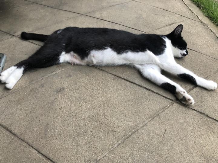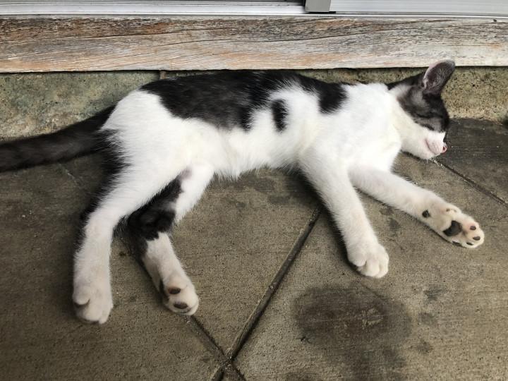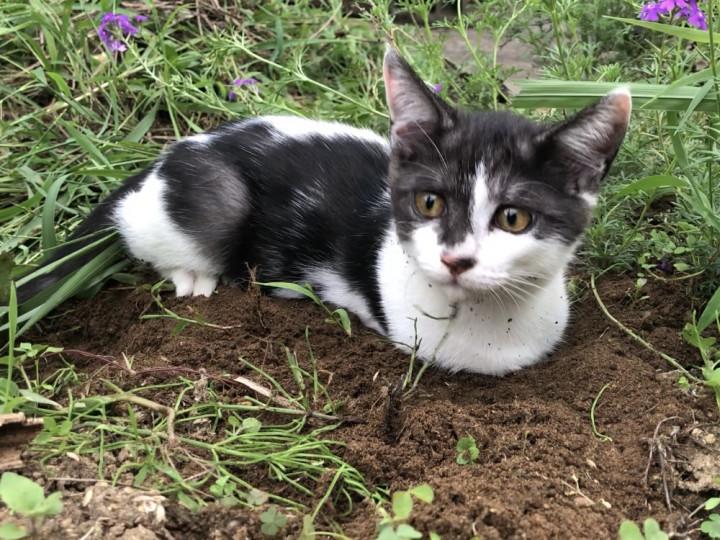 猫は穴を見ると手を入れたくなりますが、はんはなが手を入れているのはおそらくモグラの穴です。