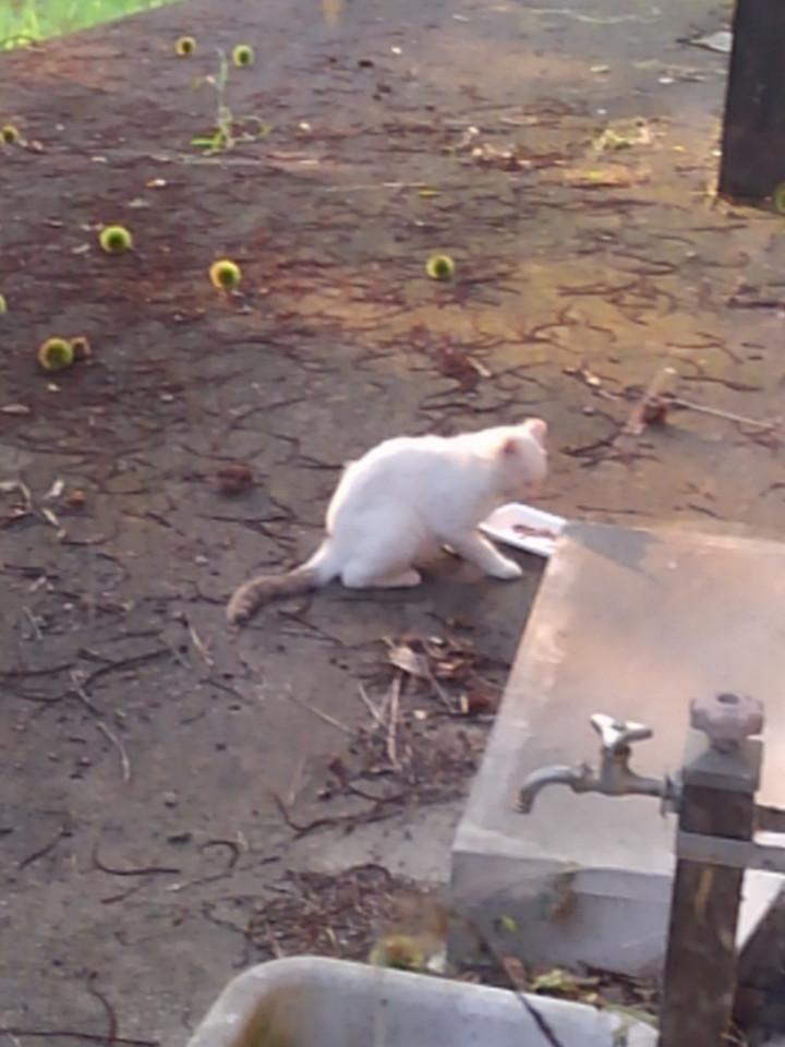 そして、お母にゃんも、私が夜に置き餌を車庫に持っていくと、近くまで来ていました。