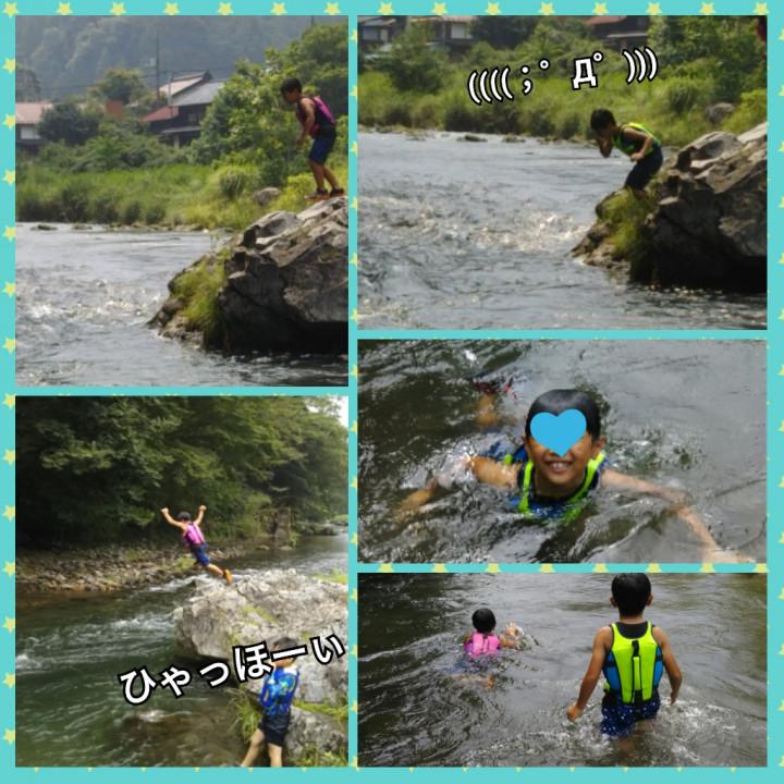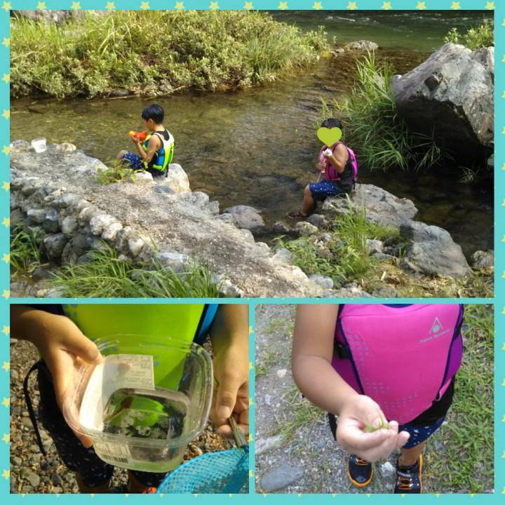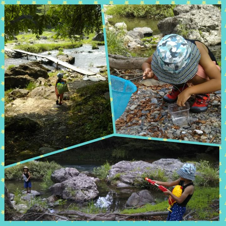 母ちゃんも、水着じゃないのに川遊びに付き合って。