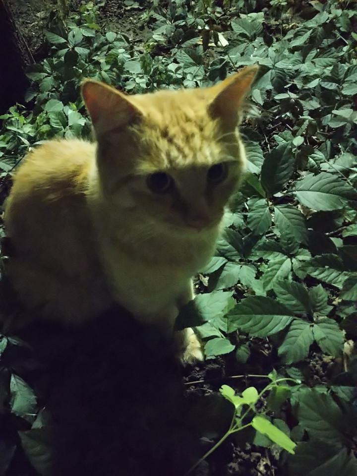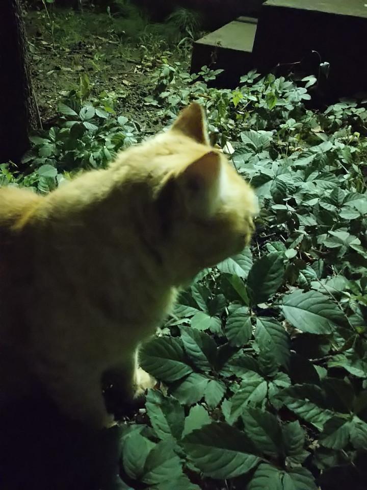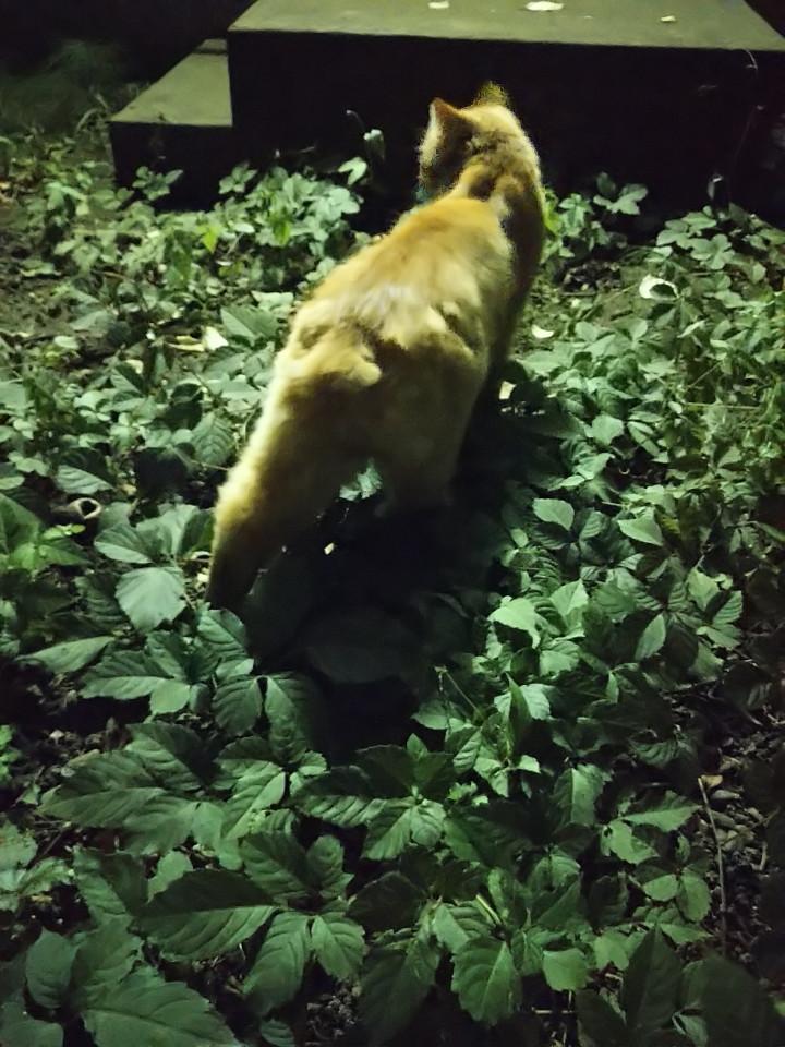 家に帰って猫達を庭に解放して、小一時間ほど遊ばせ、辺りが暗くなって来たので猫の回収作業をしていたその時‼️