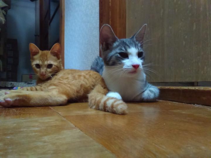 帰宅後 ちょっと元気がないおふたりにゃん。