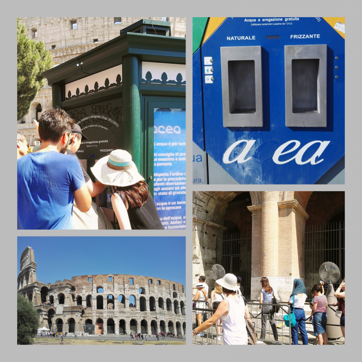 水道局(ACEA)が市民(観光客)に用意した、自動給水機、スマホの無料チャージも可能