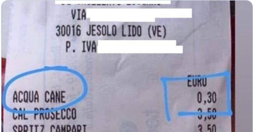 わんこの飲水(acqua cane)を頼んだところ、0,3ユーロ請求されたとのこと