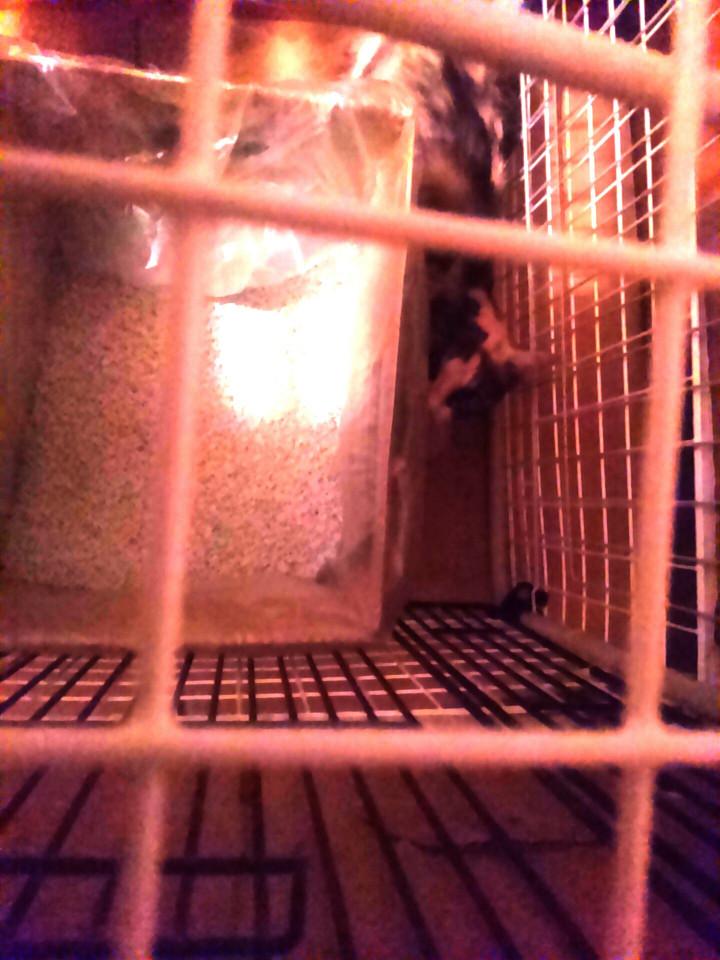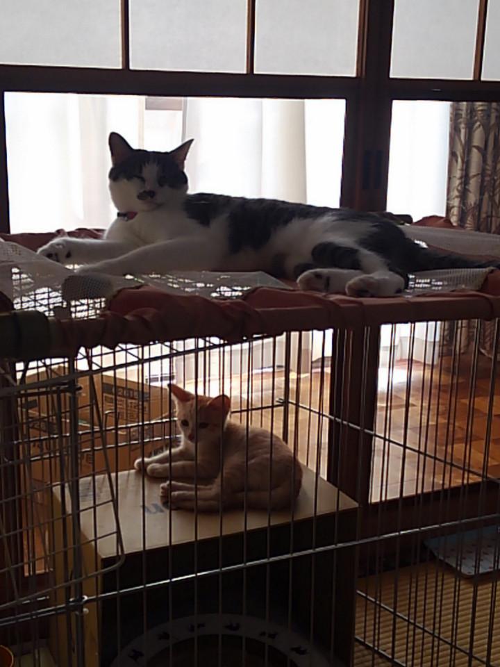 お母にゃんは洗濯ネットに入れてブロードラインののち、ケージへ。