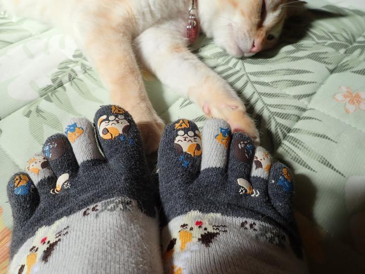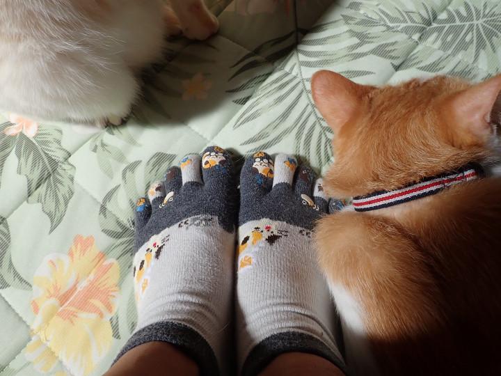 「カカ、女子の顔の前に足ってヤメテんか。つか、何その靴下!!(笑)」
