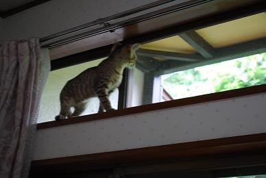 お転婆な鈴音は、登れません。悲しそうに見上げてます。