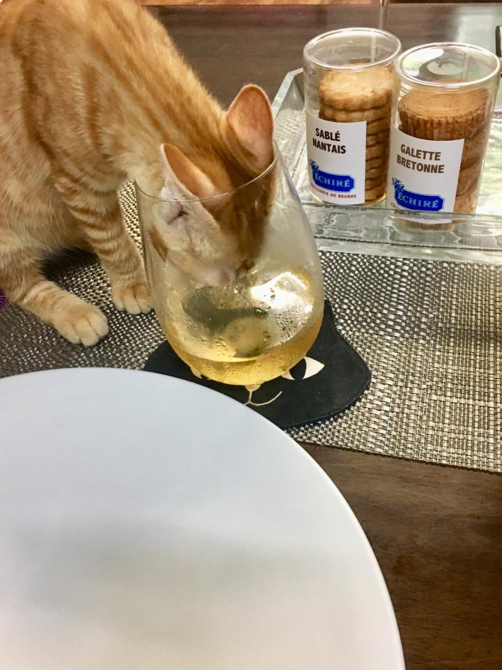 そうだ、ニャアくんも同じだったなぁ、と思ってるのも束の間、右手がミントティーにダイブ!!