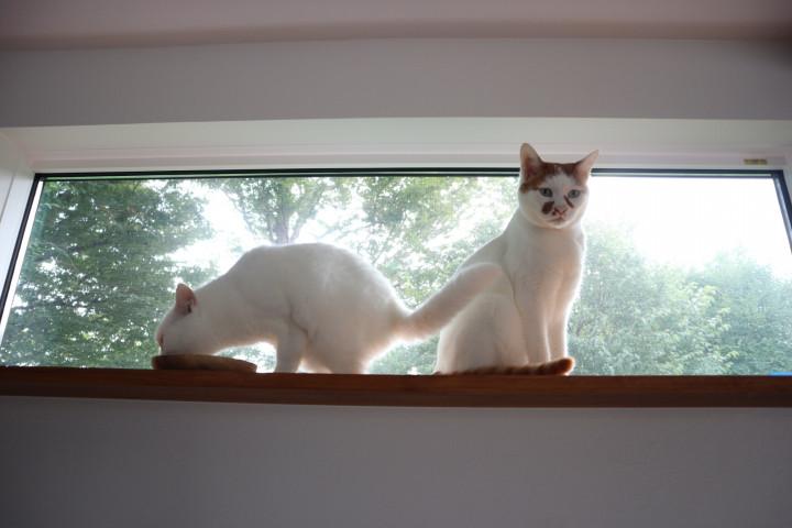 自分のご飯を、ビスに食べさせてから食べ始めることが多い。