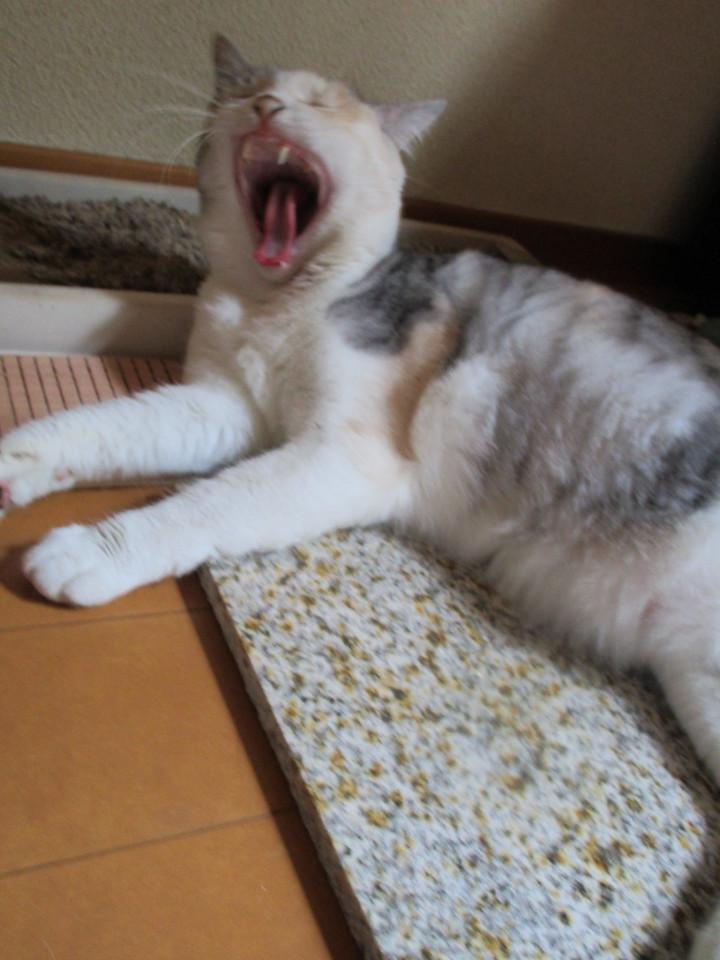 「又ちゅーるにゃの~。ふぁ~ん、食べるにゃー~。」