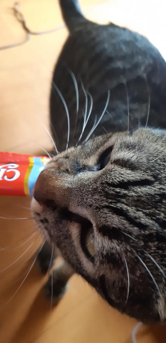 毎日おやつをあげてる訳ではないですが、暑い日は水分補給を兼ねてちゅーる。