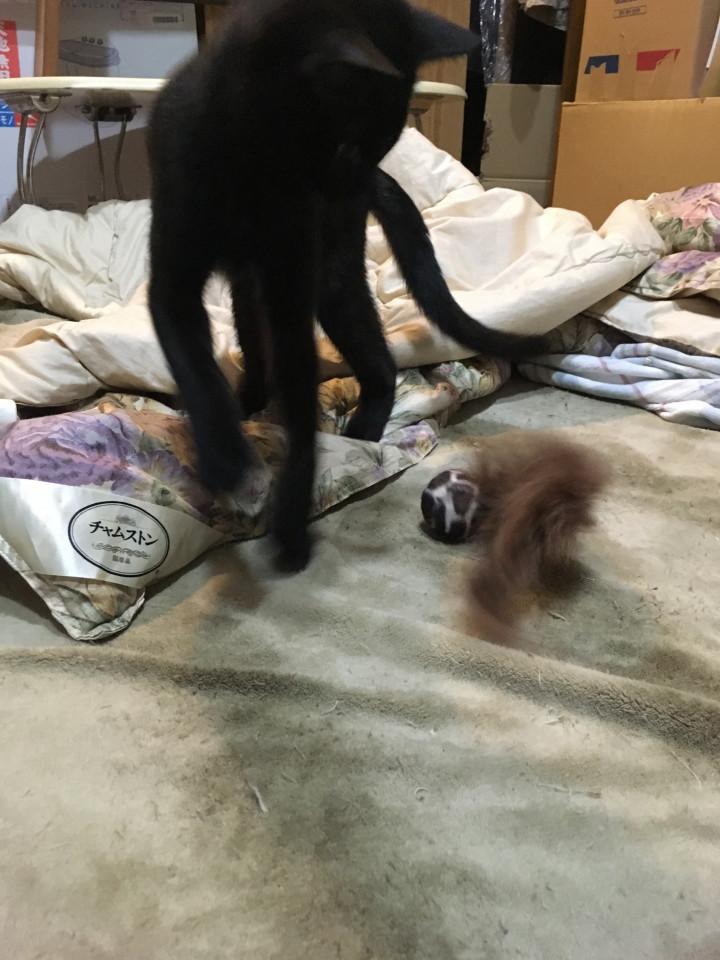 ちっこいのにあげたところ、サッカーボールのごとく、投げ上げ噛みつき追いかけ回してます。