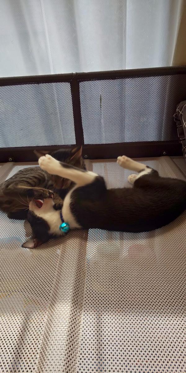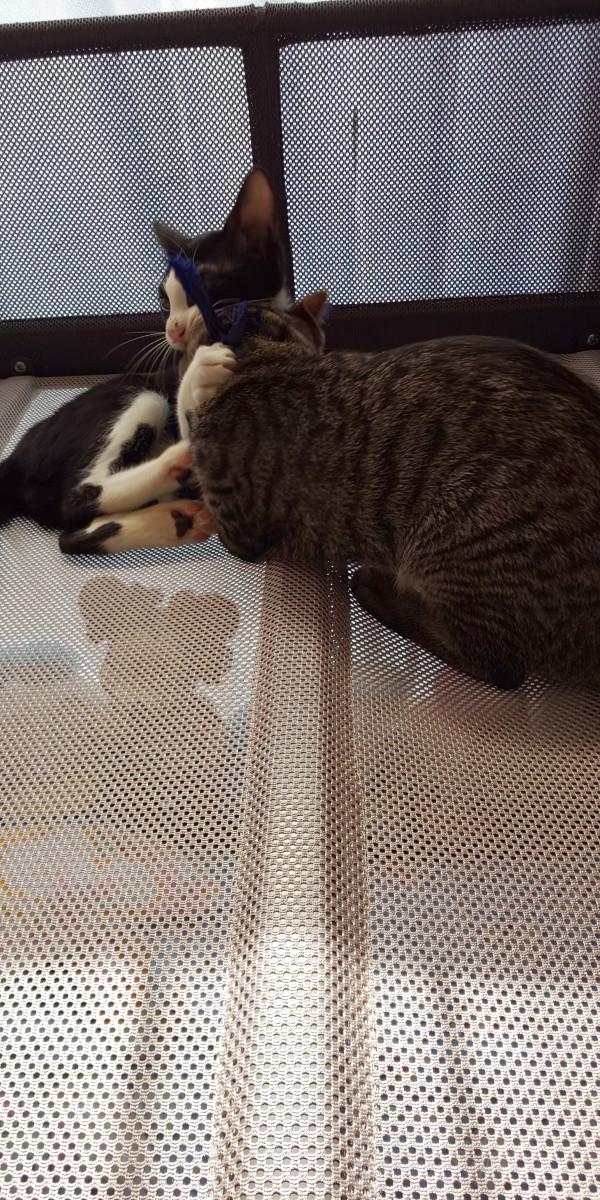 日なたぼっこは譲れないみたい・・・🤣