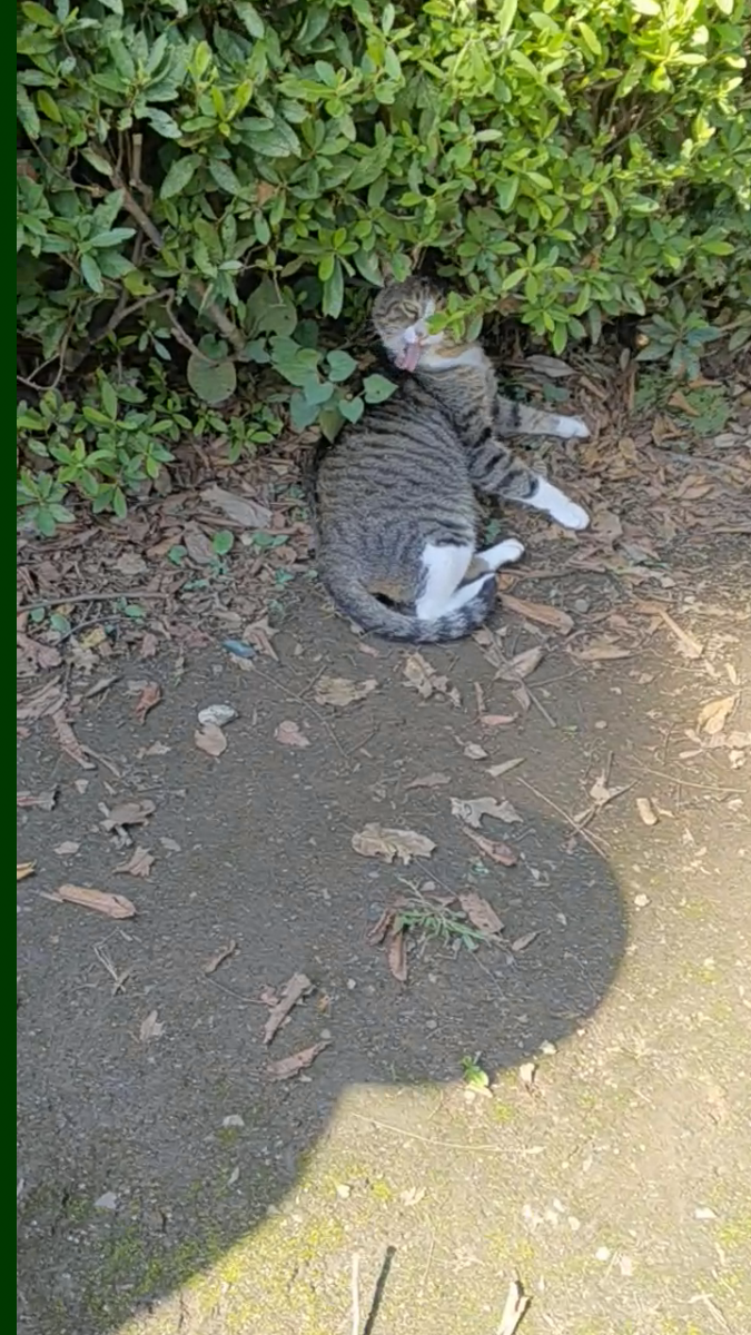 ベンチの所や芝生の上に😺ニャンコ達がゴロンゴロンしている~