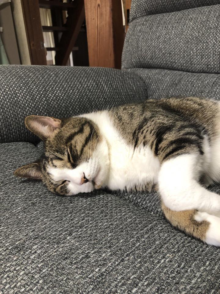 確かうちの子の次の年に貰われて来たので、今年12歳。4.5歳の頃だったか、帰って来ず2週間か、20日ほど経ったて帰って来た時には右の後ろ足がブラブラだったそうで、切断されて3足です。