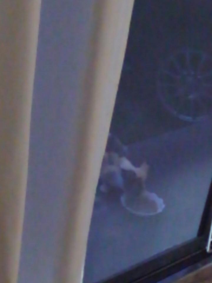 マダオは白いからすぐわかるけど、お母にゃんは迷彩のごとき三毛で存在感がなかった。