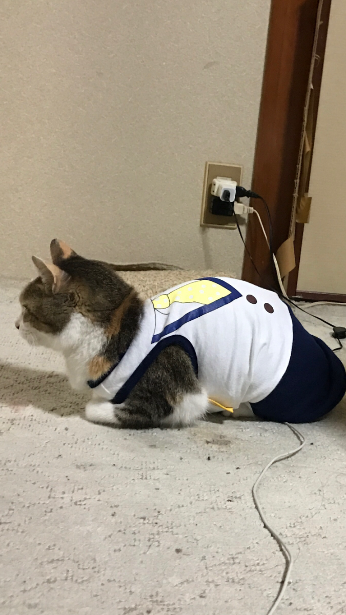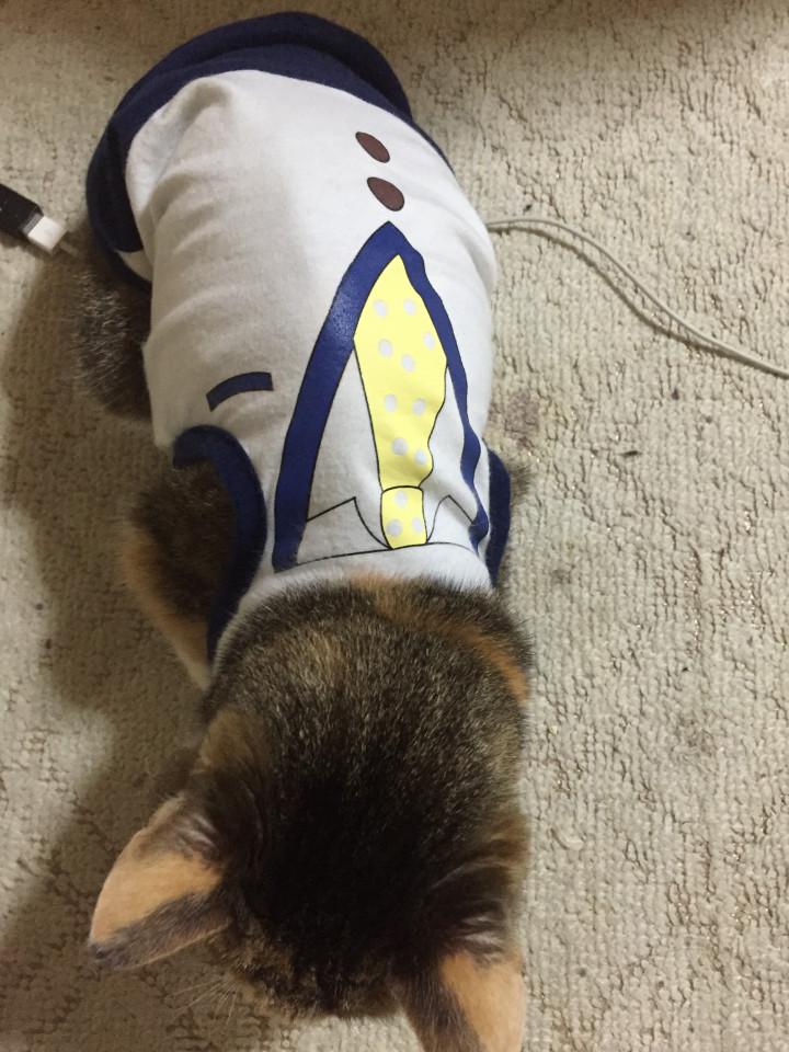 今日はまおちんが闘病中にガーゼを外さないように着ていたお洋服が可愛いかった思い出を載せてみます😄タキシード柄だけど動物病院の先生がセーラー服❤️かわいいねー‼️と言っていました。笑。