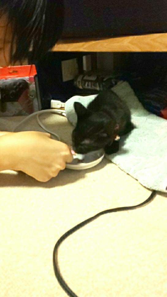 その後、棚の下に隠れて出てこないし、ご飯も食べてくれなくて心配したけど、夜遅くにもう一度 ご飯を手でちょんって口元に持っていくとやっぱりお腹が空いたのか、出て来て食べてくれたよね~☺️