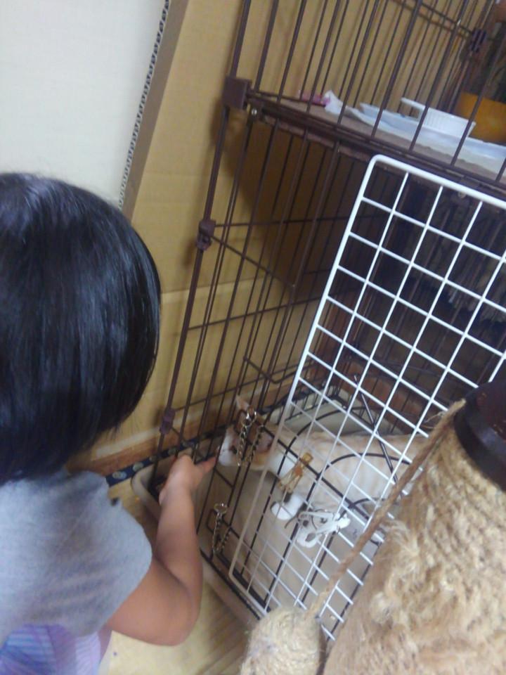 ケイティは、ケージの上がすき。