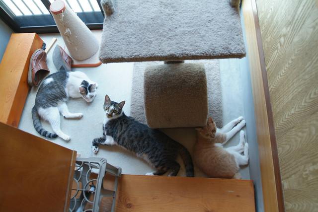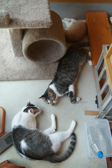やまささにとっては、2度目の夏だから、過ごし方もわかるようで涼しげな場所で「食っちゃ寝」をしているが、そらは「なぜこんなに、暑いっちか?」と言いたげ。