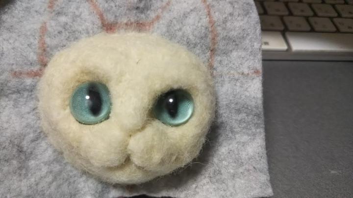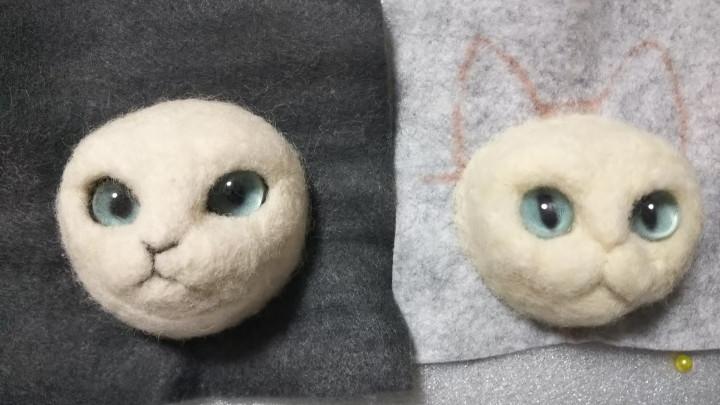 改めて、試作品の顔とお借りした写真を比べると、なんか目の印象が違う気がして、瞳孔が細いタイプのものも作ってみようと思い、それを使って作ってみました。