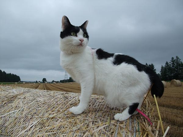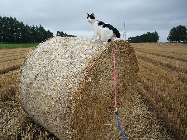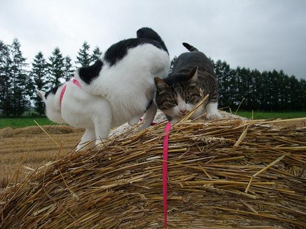畑の中に入った事のないチャムには珍しかった様で、暫く小麦殻ロールの上に乗ったまま、あちこち見回していました。