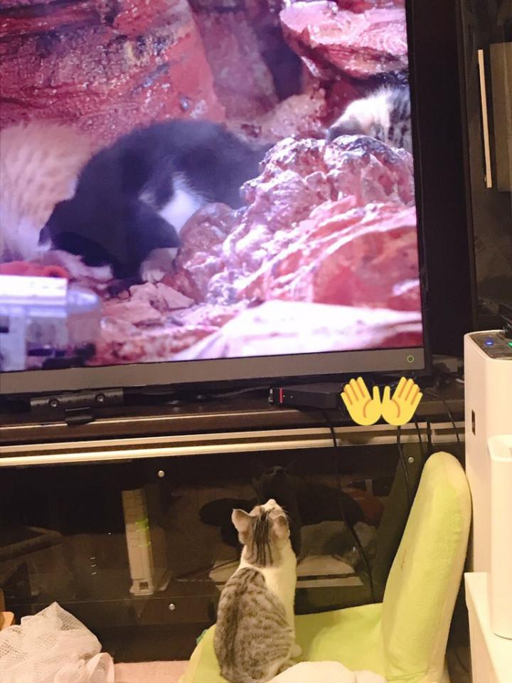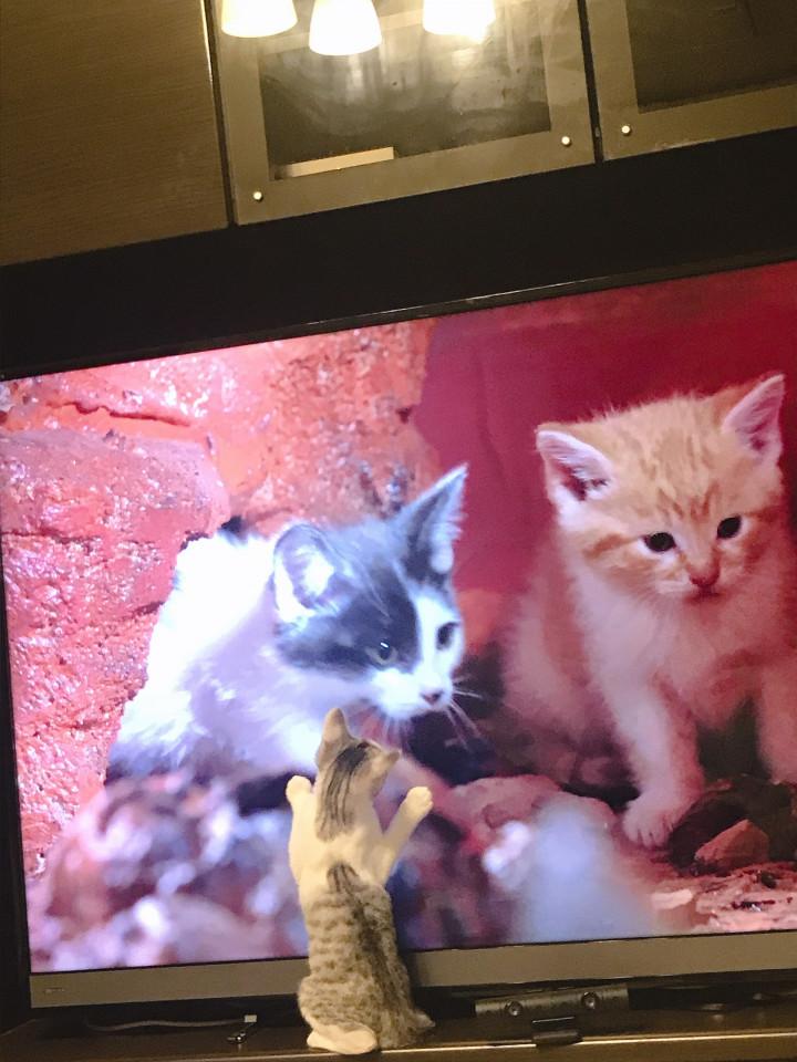 子猫が出てくる番組を流していたら、テレビに興味津々!