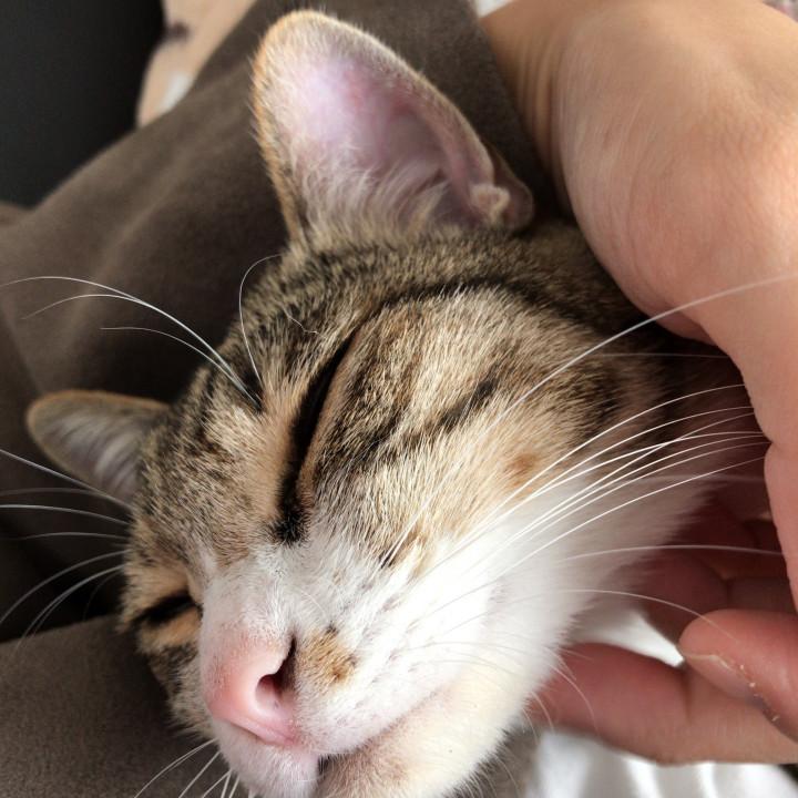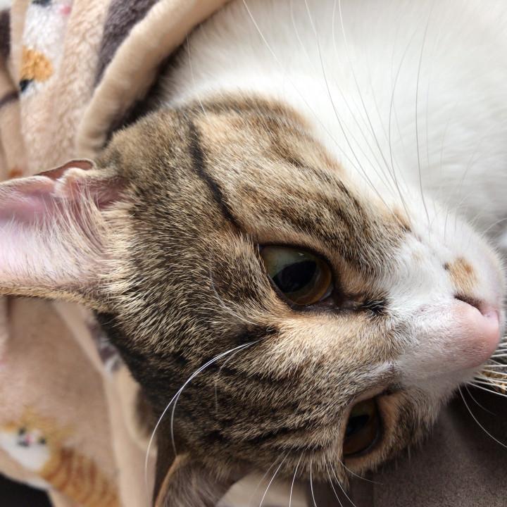 猫柄の膝掛けで、みーちゃんを温めました笑