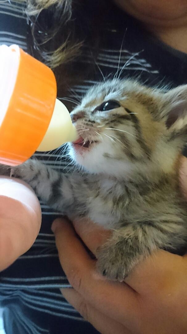 放っておけば死を待つばかりとなる。我が家でミルクを与えた。