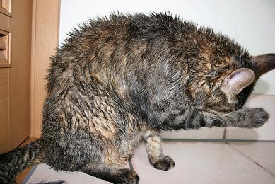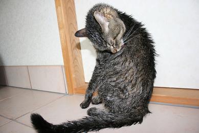 シャワーをかけられてびしょ濡れになり、シャンプーされたんだもの^^;
