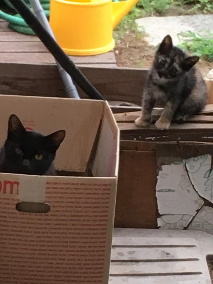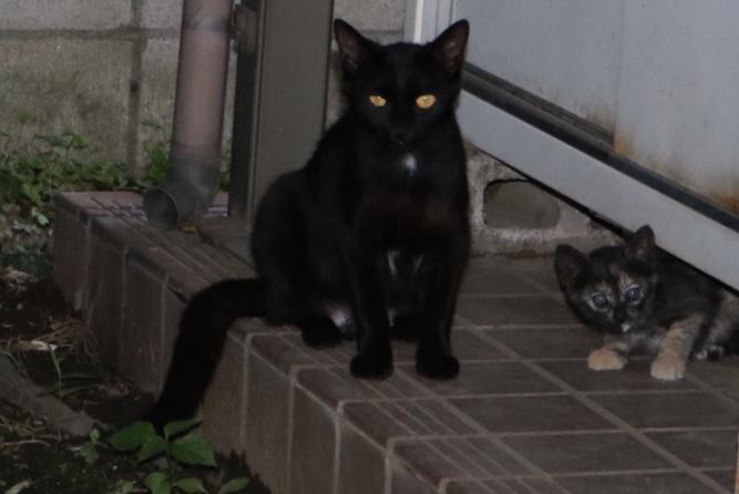 うちの庭に時々ご飯食べに来ていた黒猫が子猫1匹だけ連れて来たのです。