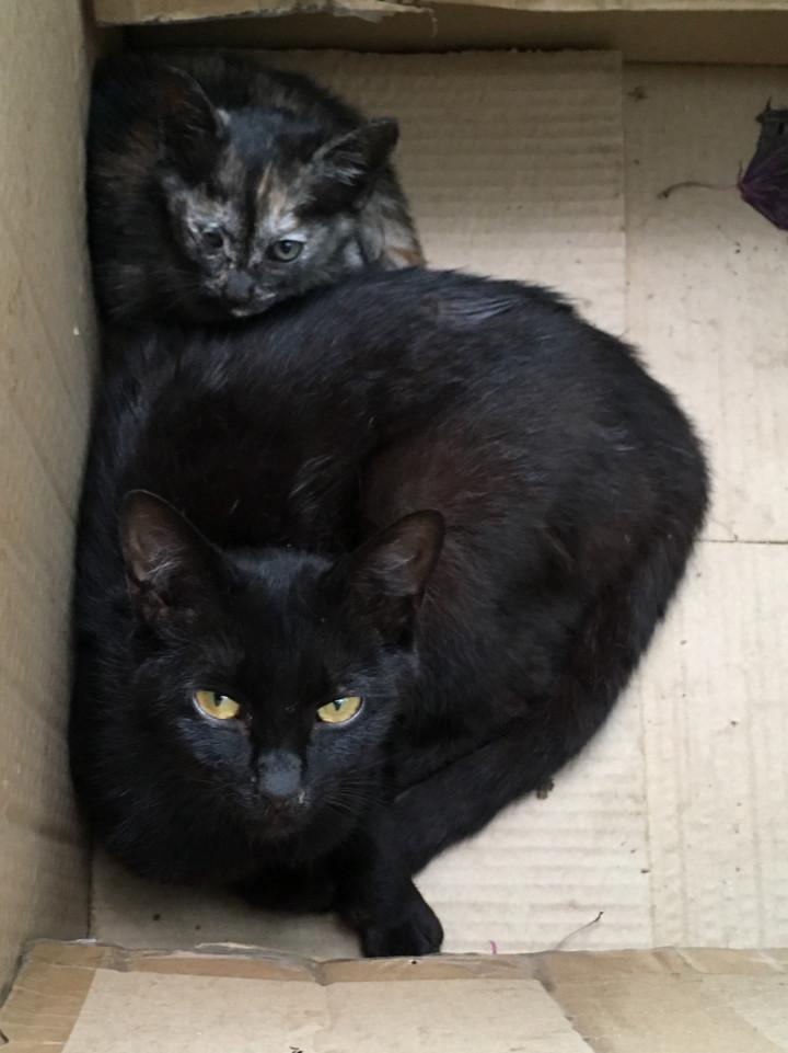 近づくとシャーシャーして子猫を必死に守ってる黒猫母ちゃん。