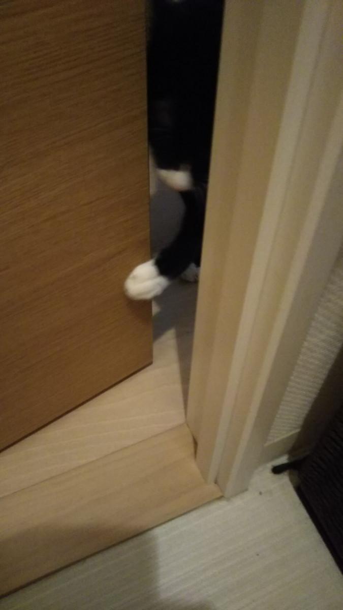 トイレへ行っただけなのに わざわざ起き上がってきて、リビングのドア前に座って待っていて。