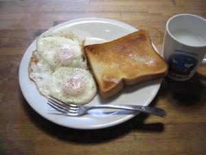 湯を沸かし、パンを焼き、目玉焼きを2つ。