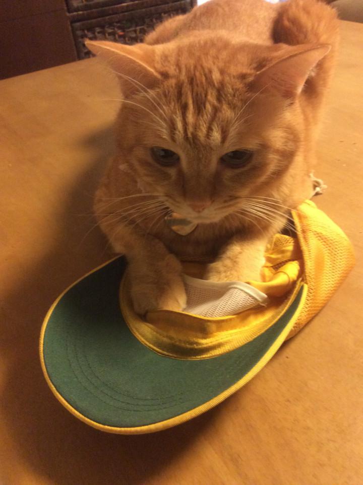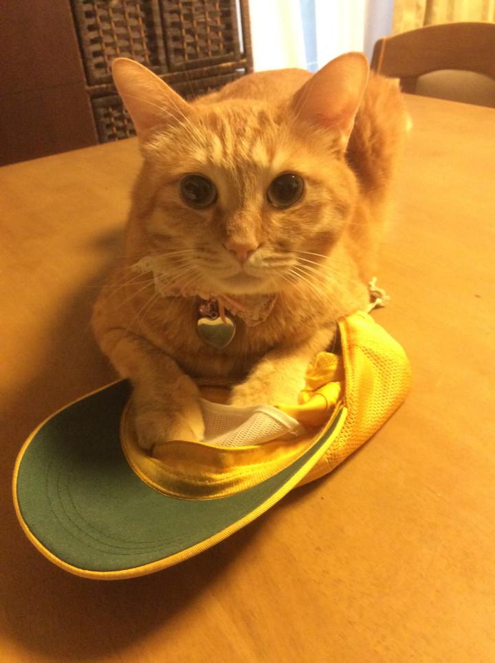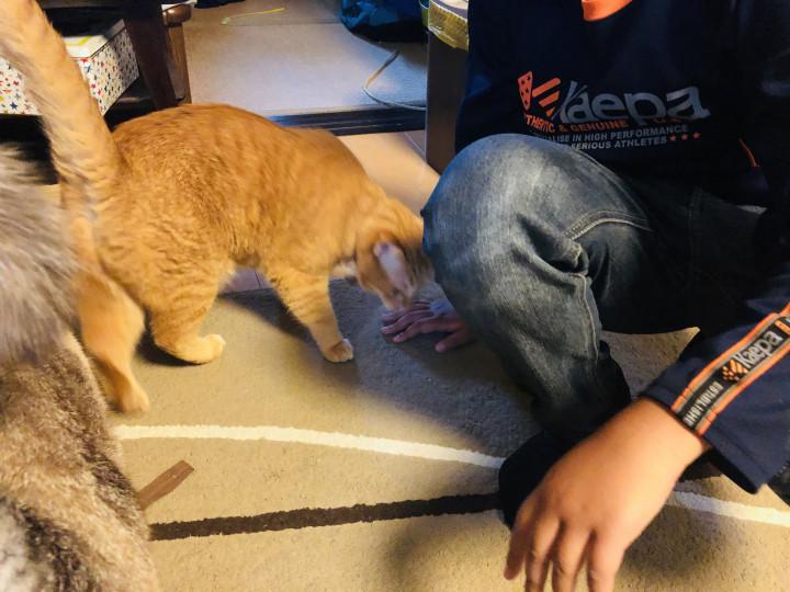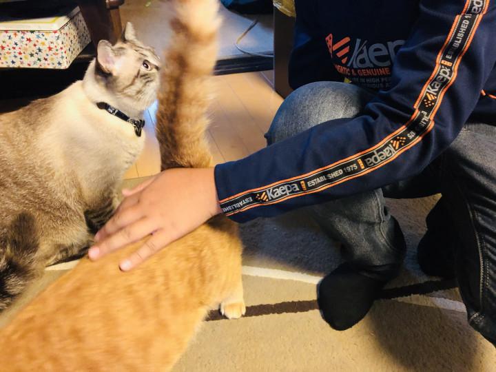 そんなこともあるのか、茶々が三男の帽子の匂いを嗅いだりくっついたり。