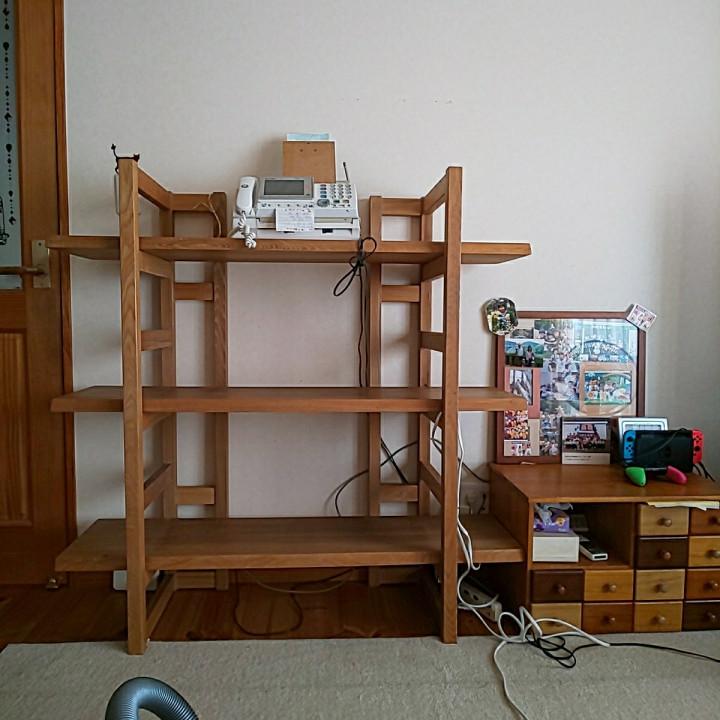 この棚には沢山の書類や本、ガラクタなどがあり、突っ張り棒に布をつけて隠していたので、子供のものとか、ゲームとかちょっとしたものが隠せるので、どんどん物が置かれて😭